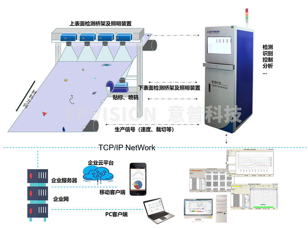 EPSIS表面缺陷檢測系統是我們經過十多年研發和應用,擁有自主知識產權的機器視覺檢測系統,它廣泛用于帶鋼表面缺陷檢測、銅箔缺陷檢測、鋁箔缺陷檢測、塑料薄膜表面檢測、鋰電池隔膜質量檢測、無紡布污點檢測、光學材料瑕疵檢測、造紙紙病視覺檢測、玻璃外觀檢測、醫療衛生材料質量檢測等行業,能夠實現100%的范圍對各種高速、連續生產產品的表面缺陷進行在線實時檢測,為提高工廠自動化和確保質量控制提供有效的解決方案。通過本產品,用戶可有效提高生產效率、降低次品率,提高產品質量;及時發現生產設備問題,降低成本;減少用戶抱怨、索賠,提高企業品牌形象及用戶滿意度。生產人員通過缺陷分布圖可以對產品表面質量作整體觀察、分析;同時,系統可以保存全面的表面質量的完整紀錄,生成最終用戶需要的表面質量分析報表